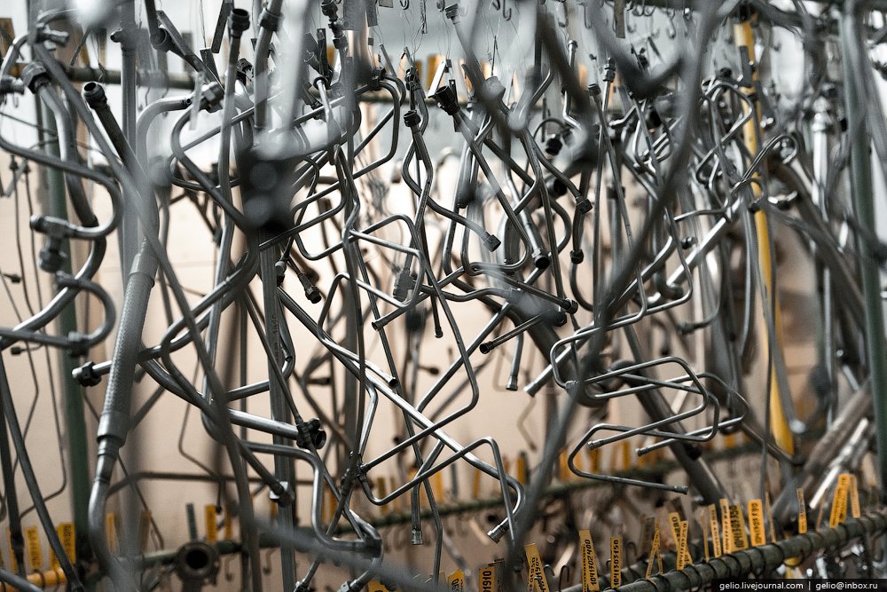 32. Производство трубопроводов и трубокЧтобы все агрегаты двигателя слаженно функционировали — компрессор нагнетал, турбина крутилась, сопло прикрывалось или открывалось, нужно подавать им команды. «Кровеносными сосудами» сердца самолёта считаются трубопроводы — именно по ним передаётся самая разная информация. В УМПО есть цех, который специализируется на изготовлении этих «сосудов» — разнокалиберных трубопроводов и трубок.