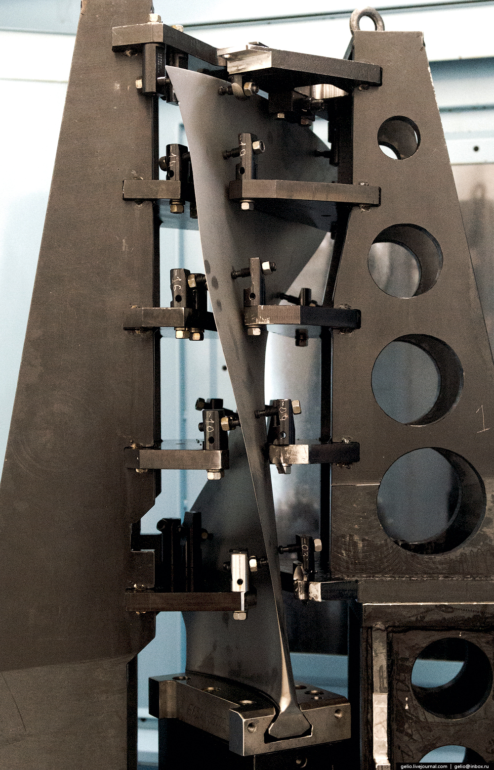 Участок обработки полой широкохордной вентиляторной лопатки. Для производства полых широкохордных вентиляторных лопаток двигателя ПД-14 — движущей установки перспективного гражданского самолёта МС-21 — создан специальный участок, где осуществляется вырезка и механическая обработка заготовок из титановых плит, окончательная механическая обработка замка и профиля пера лопатки, включая его механическую шлифовку и полировку.