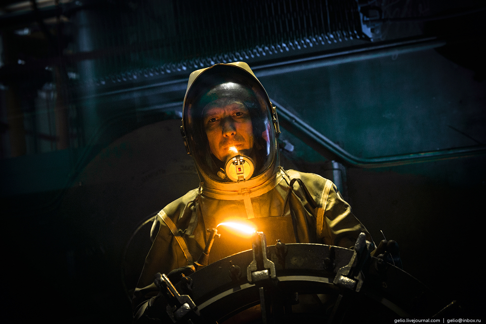 В полном облачении сварщик, действительно, похож на космонавта. Чтобы получить допуск к работе в обитаемой камере, рабочие проходят курс обучения, вначале они в полной экипировке тренируются на воздухе. Обычно двух недель достаточно, чтобы понять, годится человек для такой работы или нет — нагрузки выдерживает далеко не каждый.