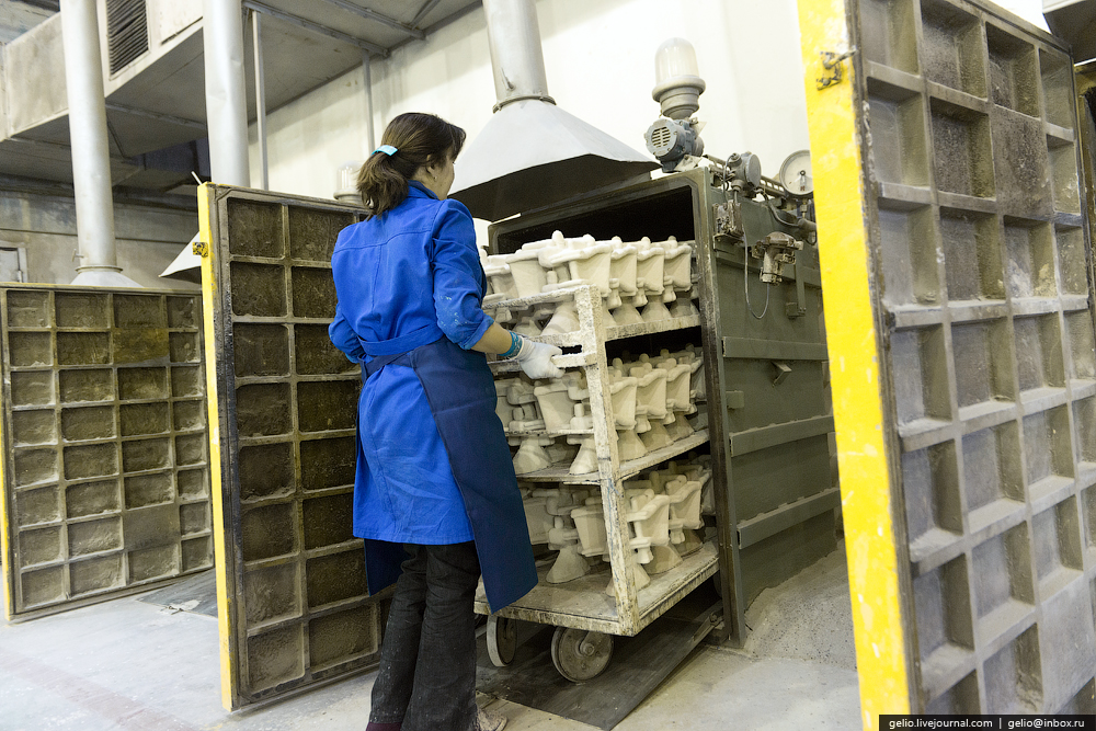 19. Перед заливкой керамические формы прокаливаются в печах.