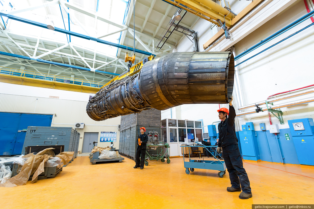 28. Слесари-сборщики за работой по сборке НК-14СТ. Газотурбинный двигатель НК-14СТ используется в составе агрегата для транспортировки газа. Интересно то, что двигатель использует природный газ, перекачиваемый по трубопроводам, в качестве топлива. Является модификацией двигателя НК-12, который устанавливался на стратегический бомбардировщик Ту-95.