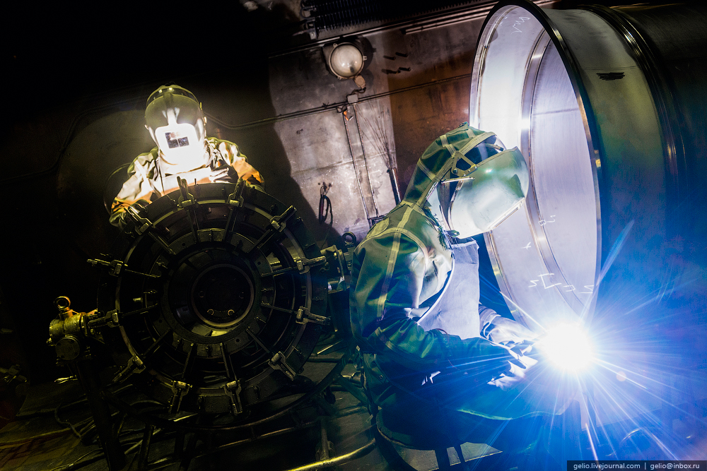5. В полном облачении сварщик, действительно, похож на космонавта. Чтобы получить допуск к работе в обитаемой камере, рабочие проходят курс обучения, вначале они в полной экипировке тренируются на воздухе. Обычно двух недель достаточно, чтобы понять, годится человек для такой работы или нет — нагрузки выдерживает далеко не каждый.