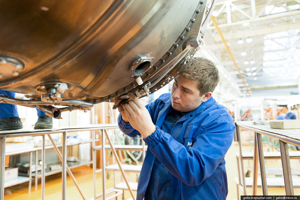 1. Сварка в обитаемой камере «Атмосфера-24». Интереснейшим этапом производства двигателя является аргонодуговая сварка наиболее ответственных узлов в обитаемой камере, обеспечивающая полную герметичность и аккуратность сварного шва. Специально для УМПО ленинградским институтом «Прометей» в 1981 году создан один из крупнейших в России участок сварки, состоящий из двух установок «Атмосфера-24».