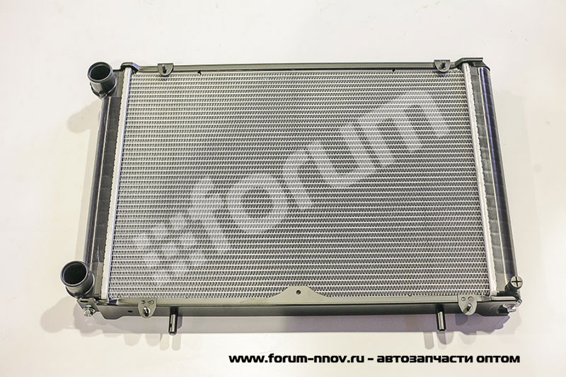 Радиатор системы охлаждения состоит из двух вертикально расположенных пластиковых баков, соединенных алюминиевыми трубками с расположенными между ними охлаждающими пластинами.