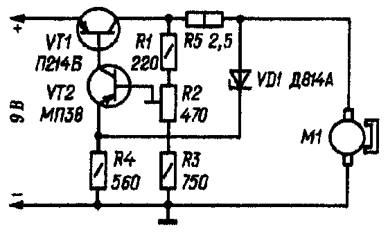Слабым местом во всех вышеприведенных схемах является то, что в них нет элемента стабилизации частоты вращения при увеличении или уменьшении нагрузки на валу двигателя.