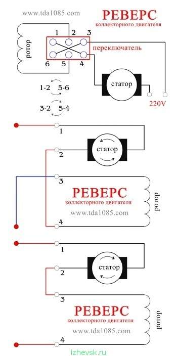 Чтобы осуществить реверс коллекторного двигателя, необходимо знать: