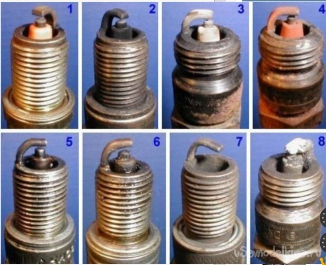 Посмотрите на фотографии и запомните как выглядит свеча при различных состояниях двигателя.
