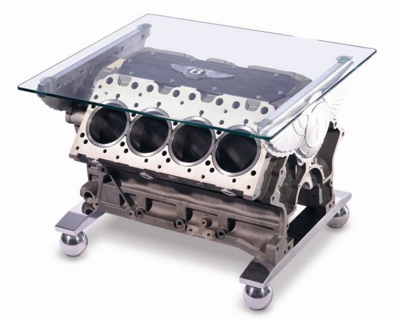 Журнальный столик, изготовленный из двигателя Porsche 928 V8.