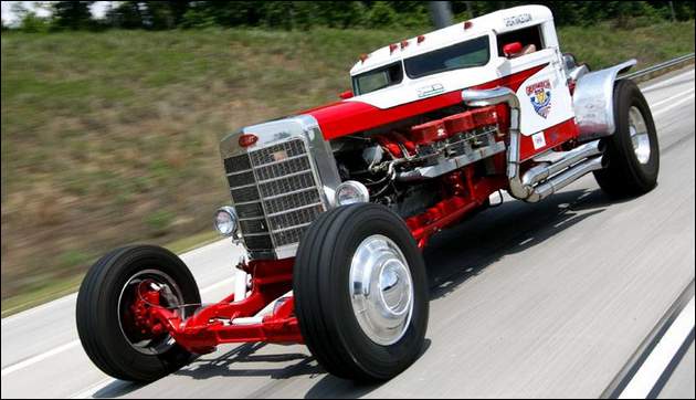 Sneaky Pete. Тремя годами позже Родни Ракер снова обратился к теме танкового мотора и построил свой второй танк-хот род Sneaky Pete, на это раз использовав в качестве кузова кабину от грузового Peterbilt 1964 года выпуска. Двигатель – всё тот же, AV-1790-5B от M47 Patton 1951 года выпуска. Масса автомобиля – 4717 кг, при этом хот-род разгоняется до 201 км/ч. На Sneaky Pete Ракер пересёк страну, проехав из Северной Каролины в Калифорнию и потратив по его собственному признанию $9000 на топливо для монстр-машины.