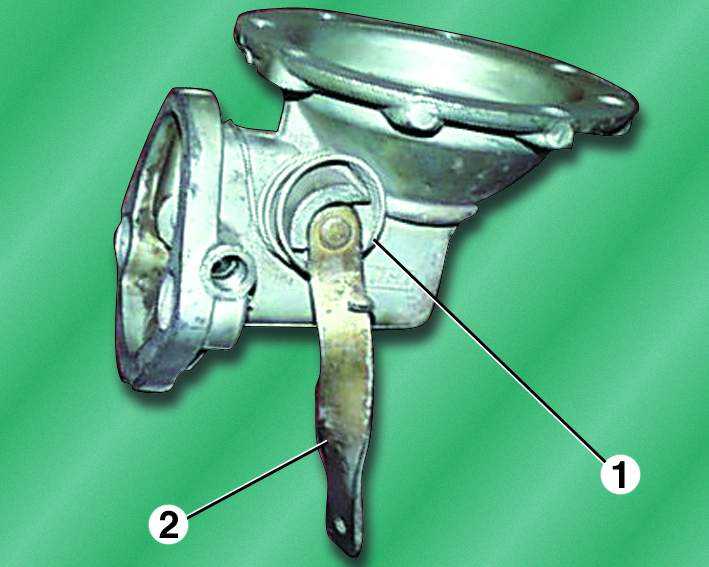 Топливо из бака поступает по топливопроводу к диафрагменному насосу. Он приводится в движение эксцентриком распределительного вала, который воздействует на рычаг привода насоса.