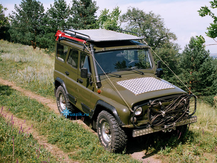 Этот автомобиль оснащен домкратом, металлическими бамперами, багажником на крыше, лебедками и внедорожными шинами. УАЗ Хантер — это обновленная версия модели 469.. В период с 2005 по 2011 год в России было продано 85 500 таких автомобилей.