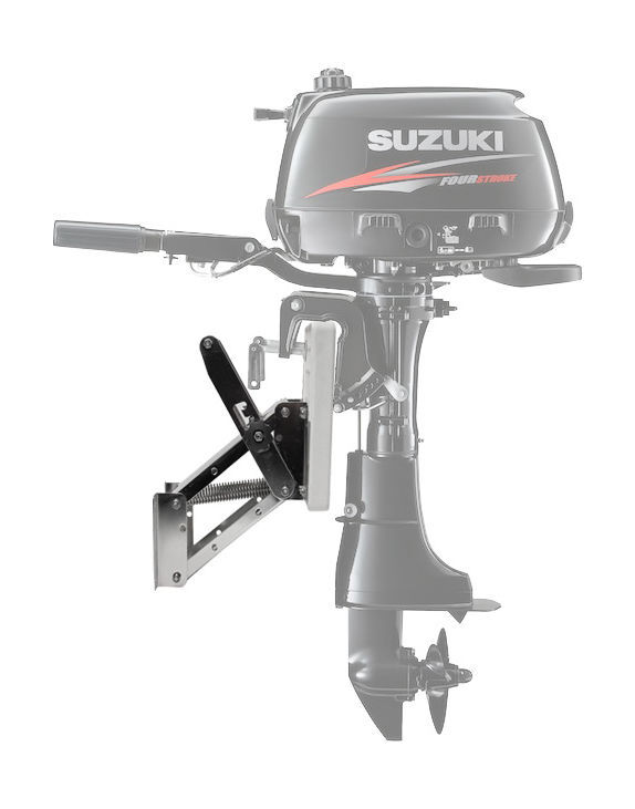 Для более крупных лодок и большинства моделей для морской воды из стеклопластика потребуется использовать кронштейн, прикрепленный болтами к транцу, для установки вспомогательного двигателя. Большинство кронштейнов двигателя являются подпружиненными моделями; тяжелая пружина облегчает подъем и опускание подвесного двигателя. Перед установкой обязательно сравните ход пружины кронштейна с высотой транца в месте установки и длиной вала двигателя.