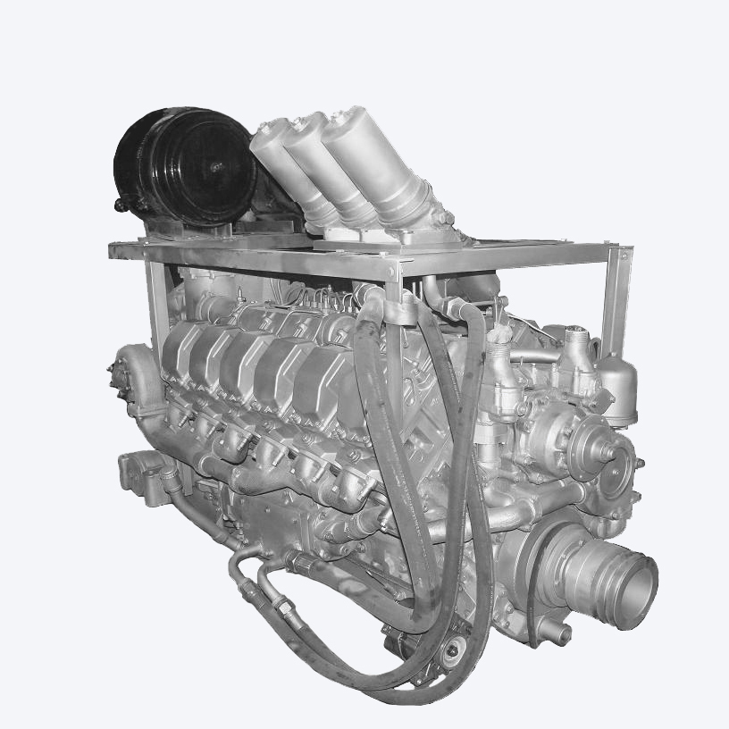 Дизельные двигатели ЯМЗ размерности DxS=130×140 мм, рабочим объемом 14,86 л, 4-тактные, с V-образным расположением цилиндров непосредственный впрыск топлива и жидкостное охлаждение