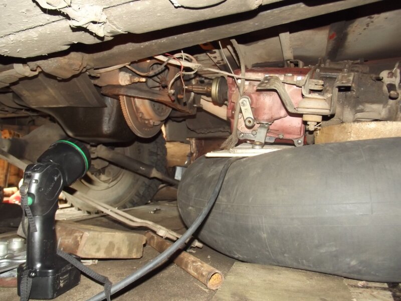 Коробка передач, раздаточная коробка и поперечина их крепления остаются на месте. Наступает самый ответственный момент: помощники (нужно четыре человека, но были и такие, кто ухитрялся проделать это вдвоем) поднимают двигатель. Сначала его ставят на правую колесную арку (слева мешает руль), а потом снова приподнимают и выносят через правую дверь из кабины.