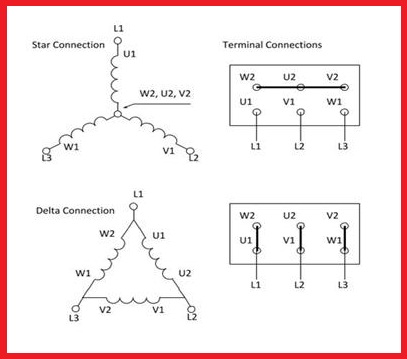 Рис. 3. Соединение обмоток электродвигателя звездой и треугольником
