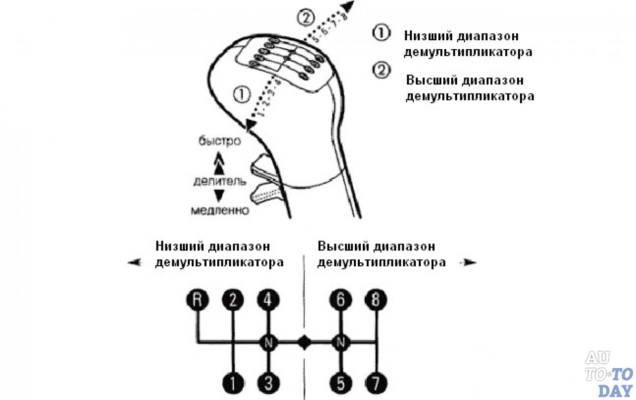 Даже без учета раздатки, наличие на многих моделях делителя или демультипликатора, а то и обоих вместе, логично предполагает иное движение руки, чем на «классике». Но если даже водитель назубок знает схематический план переключения, и знает, как пользоваться дополнительными переключателями демультипликаторов, то это не дает никакой гарантии, что сам процесс переключения будет происходить так, как того требует производитель.