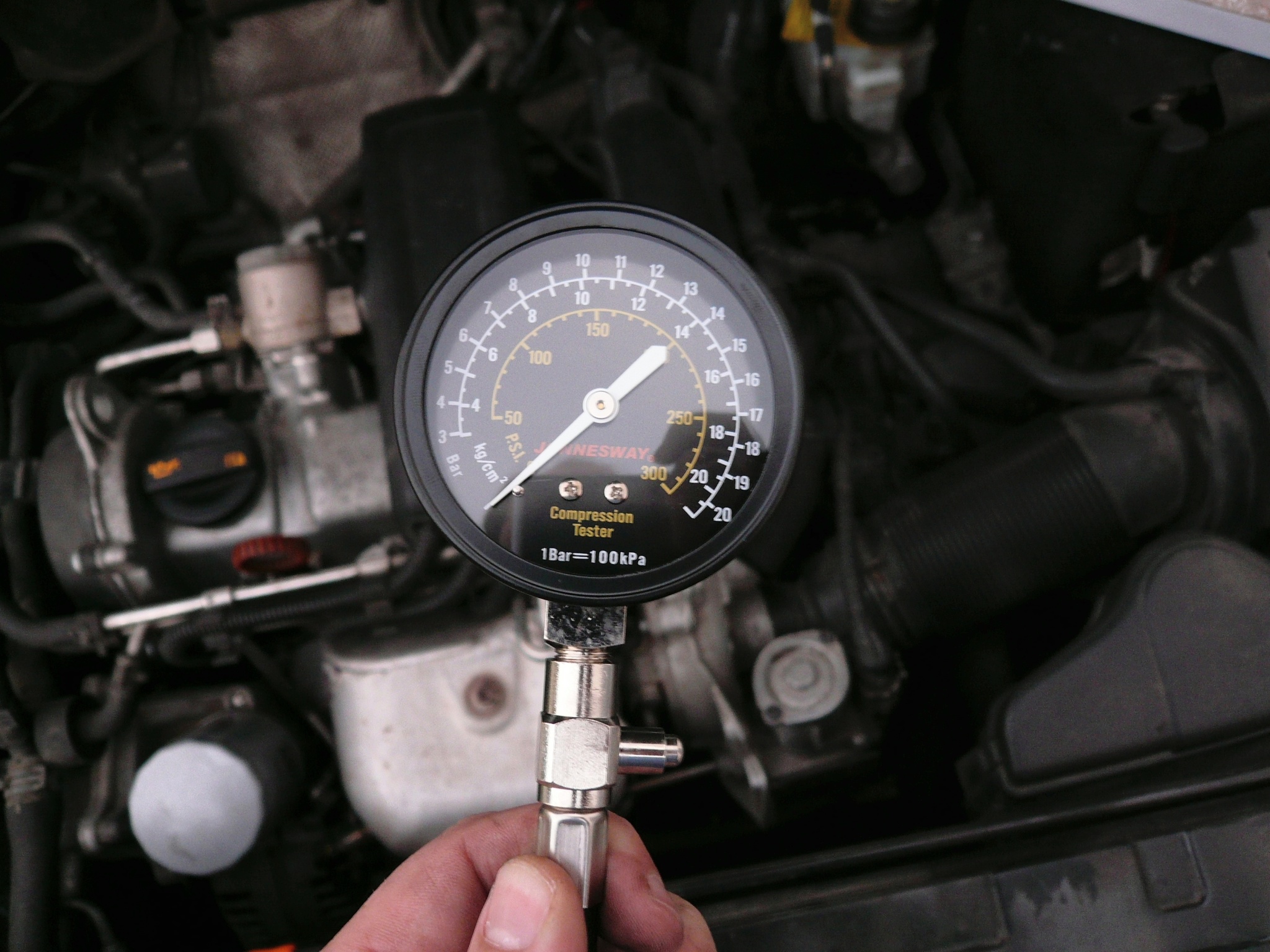 Проверка давления в цилиндрах может использоваться для подтверждения проблем с компрессией при запуске двигателя или в условиях работы.