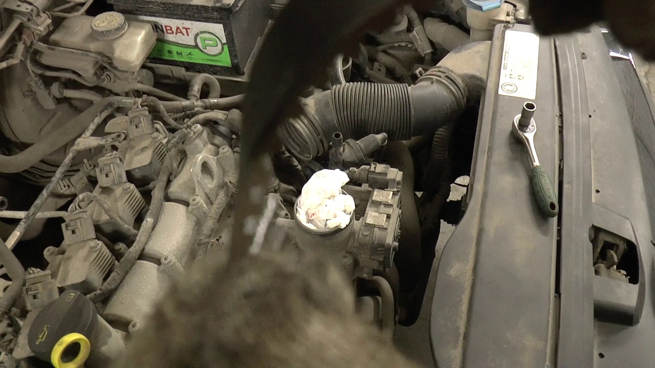 - Отсоединить и снять детали системы воздухоочистки, мешающие доступу к свечам (патрубки, корпус воздухофильтра и т. д.)