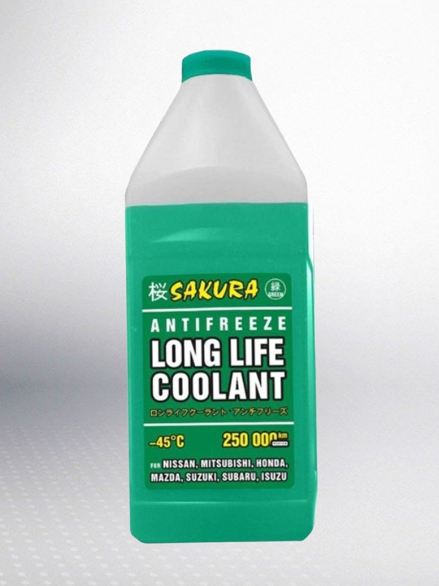SAKURA GREEN также является карбоксилатным антифризом, созданным с использованием 14 уникальных присадок. Разработан специально для использования в системе охлаждения грузовых и легковых автомобилей HONDA, NISSAN, MAZDA, MITSUBISHI, SUZUKI, SUBARU. Эта жидкость обладает высокими антикоррозийными свойствами, не давая разрушаться деталям системы. Также эффективно очищает радиатор от накипи и не дает образовываться новым отложениям.