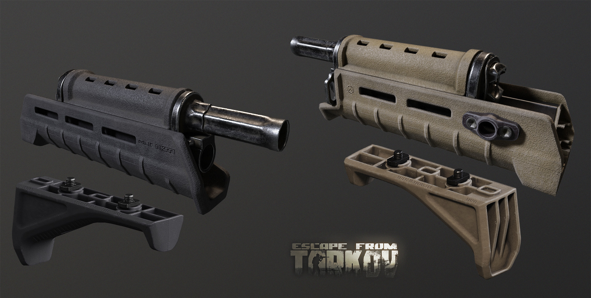AFG: Для любого оружия, кроме АК, отлично подходит стандартная AFG (передняя рукоятка под углом). Поскольку M-LOK ставится только на AK, другие виды оружия ограничиваются стандартной AFG.