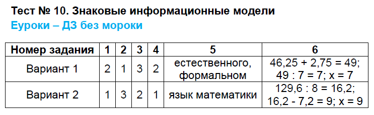 Тест по информатике Информационное моделирование 6 класс