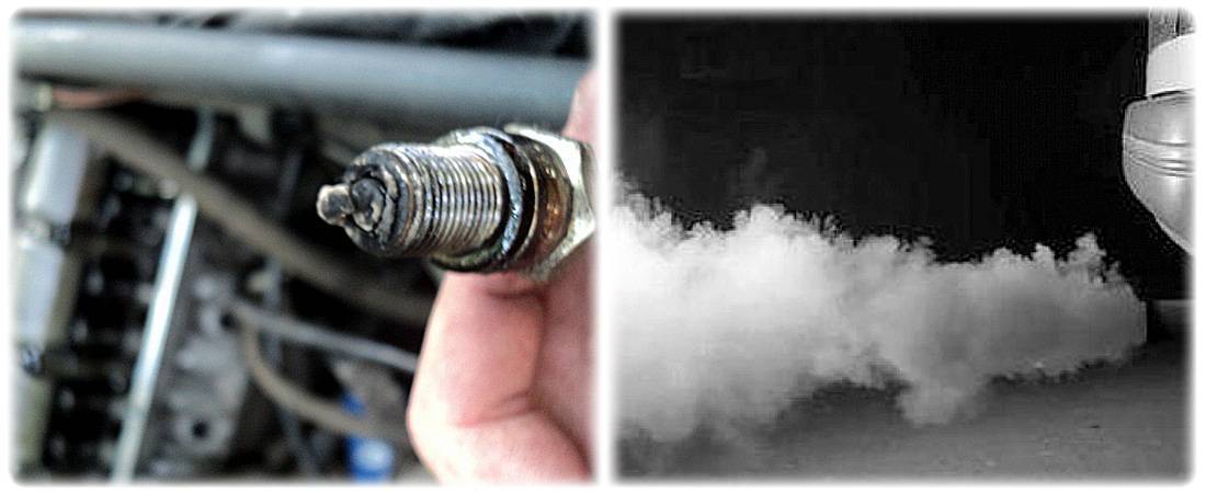 Проявится нестабильность в работе мотора, потеряется мощность и увеличится расход. Следы сгорания появятся на тарелках клапана, днище поршня и электродах свечей. При активном поступлении масла, сальники просто не смогут его сдерживать, появятся пропуски зажигания и свечи выйдут из строя.