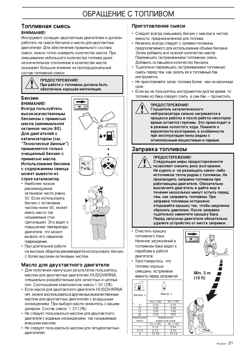 Рекомендации по приготовлению смеси и заливке бензобака: