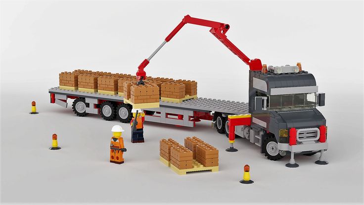 Этот симпатичный маленький грузовик для утилизации — один из моих любимых! Я использовал два изогнутых кирпича 2 x 1 x 1 1/3 для задней части грузовика. В противном случае этот грузовик просто номерной знак.