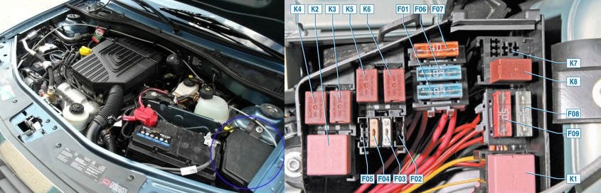 Схема блока предохранителей Dacia/Renault Logan 2 и реле с назначением и расположением