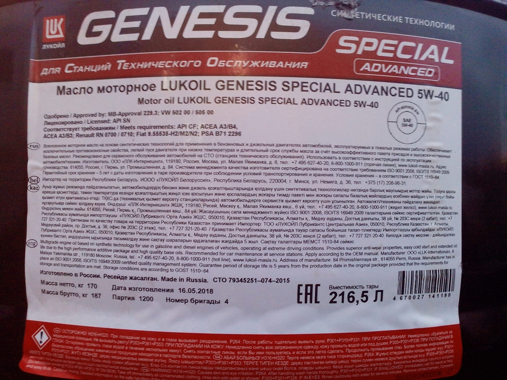 - ЛУКОЙЛ GENESIS SPECIAL 5W-40 205L 1 015,98 € с дф