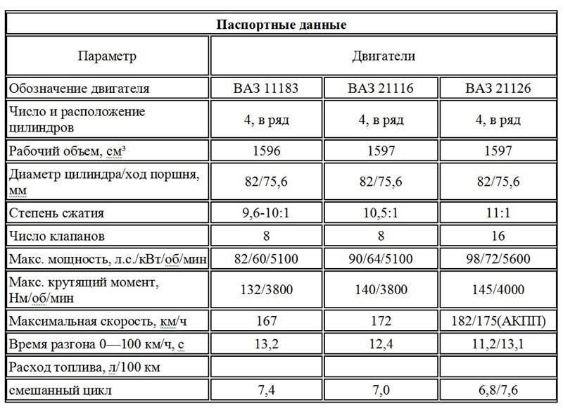 модификации и технические характеристики Lada Калина
