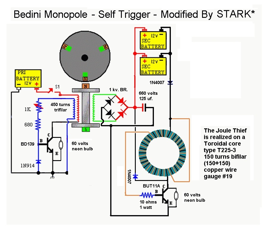 Генерируемая электрическая энергия затем может питать двигатель, позволяя двигателю работать как генератор. Это можно сделать в замкнутом цикле, создав самоподдерживающуюся систему, не требующую подвода внешней энергии.