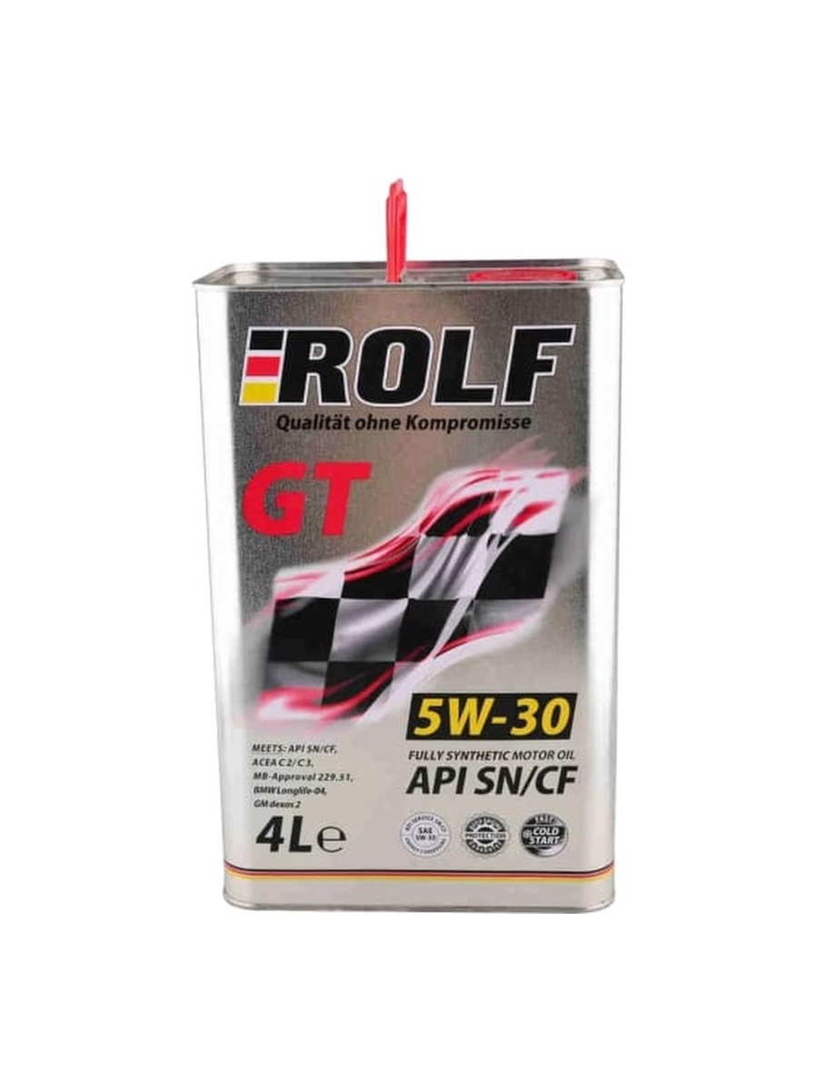 ROLF GT 5W30 SN/CF – полностью синтетическое моторное масло. Обладает высшей спецификацией смазочных материалов для двигателей легковых автомобилей, работающих на бензине.