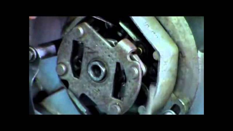 Если вы максимально развели рукой грузики, а контрольная лампочка не загорелась, то это значит, что зажигание позднее. Если же лампочка загорается до полного разведения грузиков, значит зажигание слишком раннее. И теперь для того, что бы выставить нужный момент зажигания, необходимо ослабить три винта М5 крепления корпуса прерывателя к картеру мотора и поворачивать корпус прерывателя против часовой стрелки, если зажигание раннее, или по часовой стрелке, если зажигание позднее — поворачивать до момента загорания контрольной лампочки.