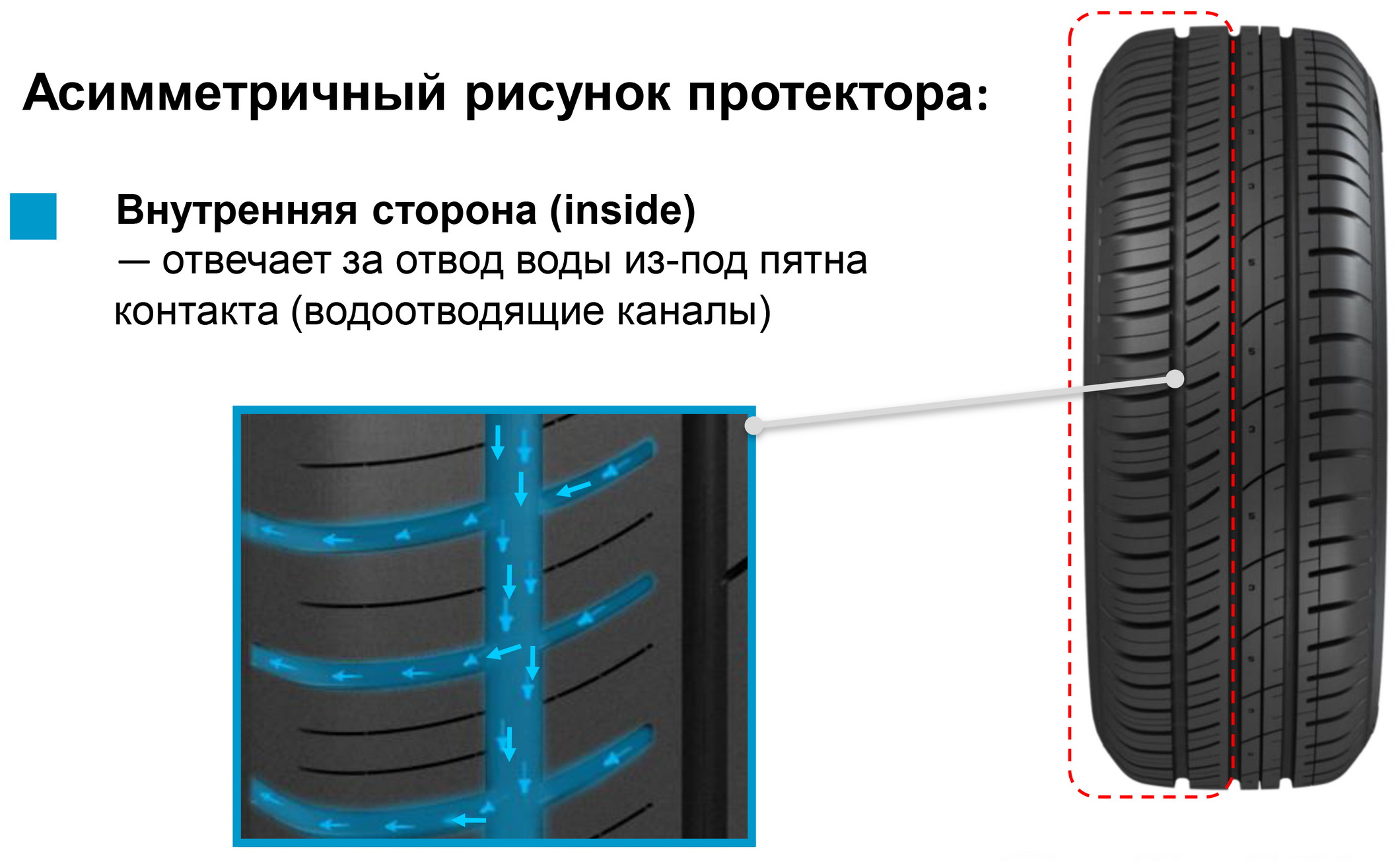 На боковине асимметричных шин, о которых мы подробно рассказывали в этом материале, можно заметить две маркировки: Inside и Outside. Давайте разберем их предназначение и дадим пару рекомендаций о том, какой должна быть правильная установка асимметричных шин на автомобиль.