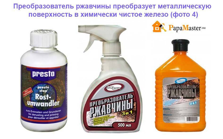 На сегодняшний день, многие компании изготавливающие автомобильную химию, также производят различные средства для преобразования ржавчины на основе разных действующих веществ. Также, в продаже существуют разные средства для защиты очищенного метала основанные на процессе оцинковки деталей.