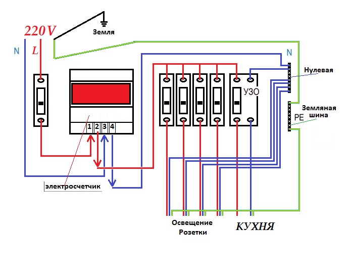 Кроме того, схема электропроводки частного дома с трехфазным вводом характеризуется большим, по сравнению с однофазной проводкой, количеством линий и соответственно защитных аппаратов, для которых также необходимо предусмотреть место в квартирном щитке.