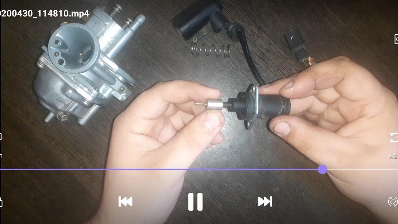 Поломка в нем, помимо недержания холостых, определяется по перепотреблению скутером топлива или довольно тяжелом запуске после длительной стоянки. Для более точной диагностики используется электрический метод. 2 провода с изоляцией подсоединяются к клеммам аккумулятора, а на пусковой обогатитель подается напряжение в 12 вольт. Провода подсоединяются к фишкам (разъемам). В норме, игла обогатителя через несколько минут начнет опускаться. Если же этого не происходит, то дело или в проводке, или неисправен обогатитель. Когда проводка целая, электромагнитный клапан заменяется новым, чистятся каналы.