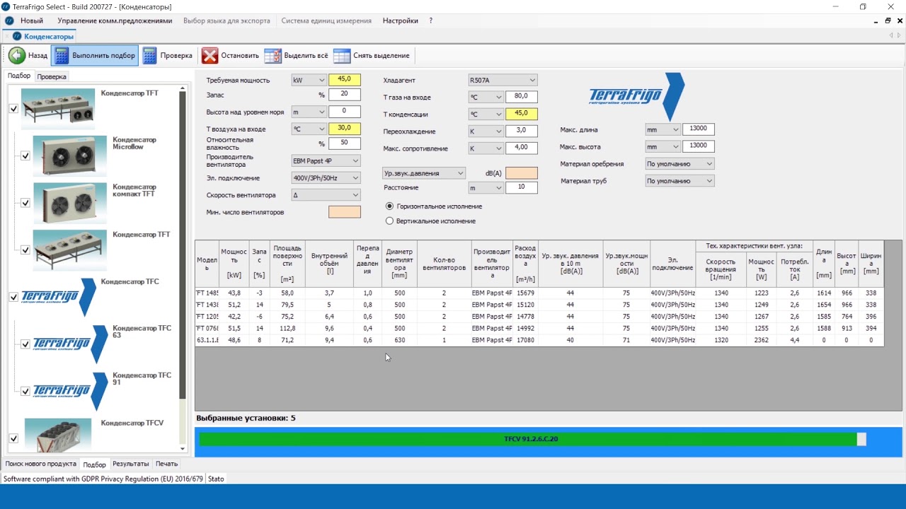 Входящий в холодильный агрегат конденсаторный блок должен соответствовать заданным техническим характеристикам: