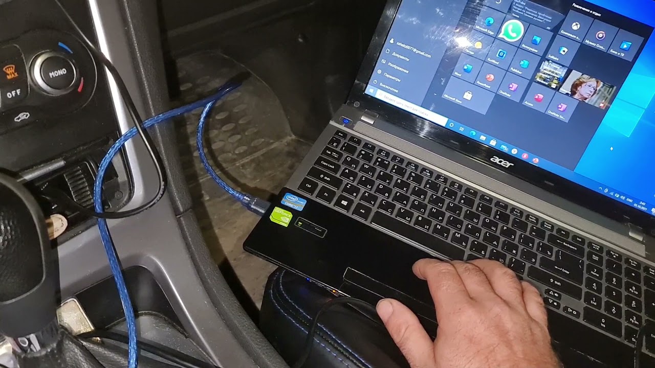 Переведите свой автомобиль в режим аксессуаров (убедитесь, что ваш APIM включен и полностью запущен). Подключите адаптер между компьютером и автомобилем.