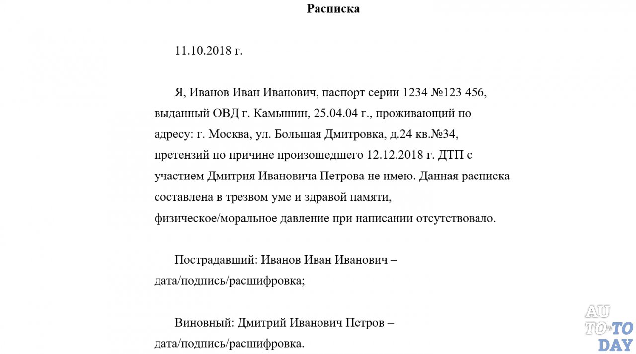 - СКАЧАТЬ образец расписка при ДТП «претензий не имею» .doc