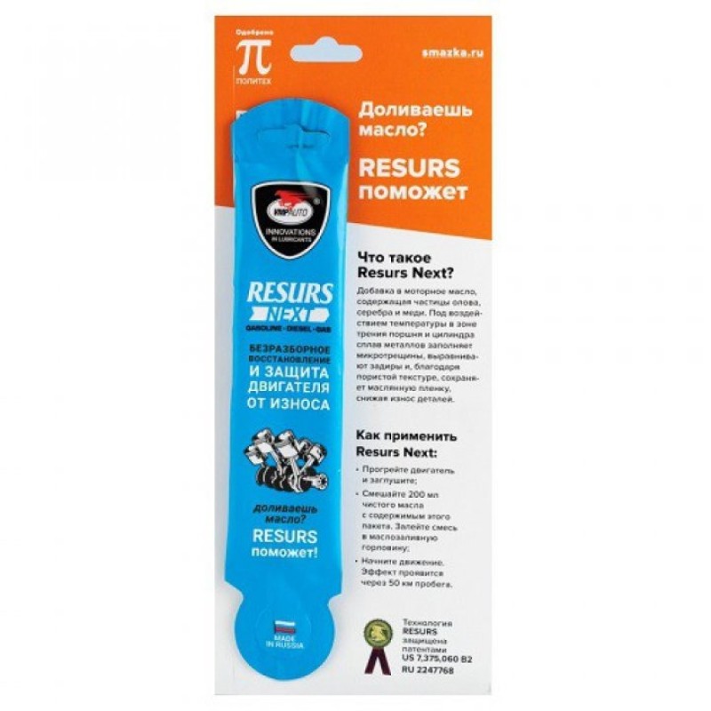 Для восстановления поверхностей двигателя достаточного одного флакона RESURS Next. В случае очень серьезных проблем с двигателем эффект от RESURS не гарантируется.