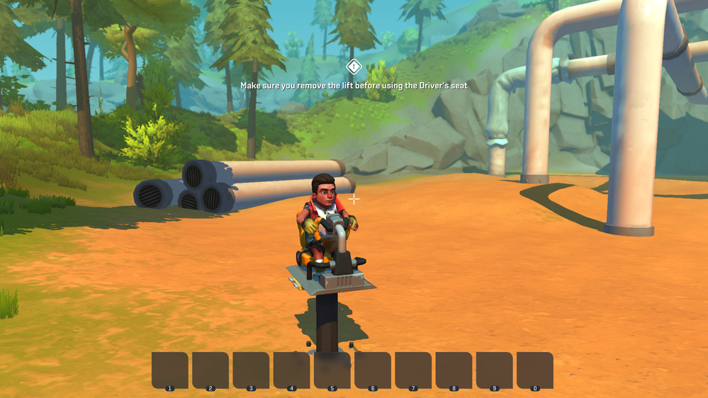 Просто следуйте по грунтовой дорожке к ящику рядом с вашим кораблем, пока не увидите эту сломанную конструкцию: Поднимитесь на конструкцию и доберитесь до этой части: поднимите батарею с помощью LMB и возвращайтесь на свой корабль. Затем поместите батарею здесь: