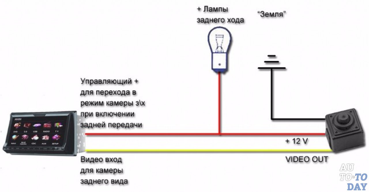 Схемы подключения камеры заднего вида к автомагнитоле и монитору