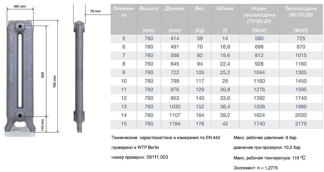- Расчет кол-ва секций чугунного радиатора