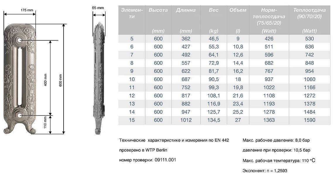 Чугунный радиатор – 600 x 400 мм: Вес 44 кг 9 0005