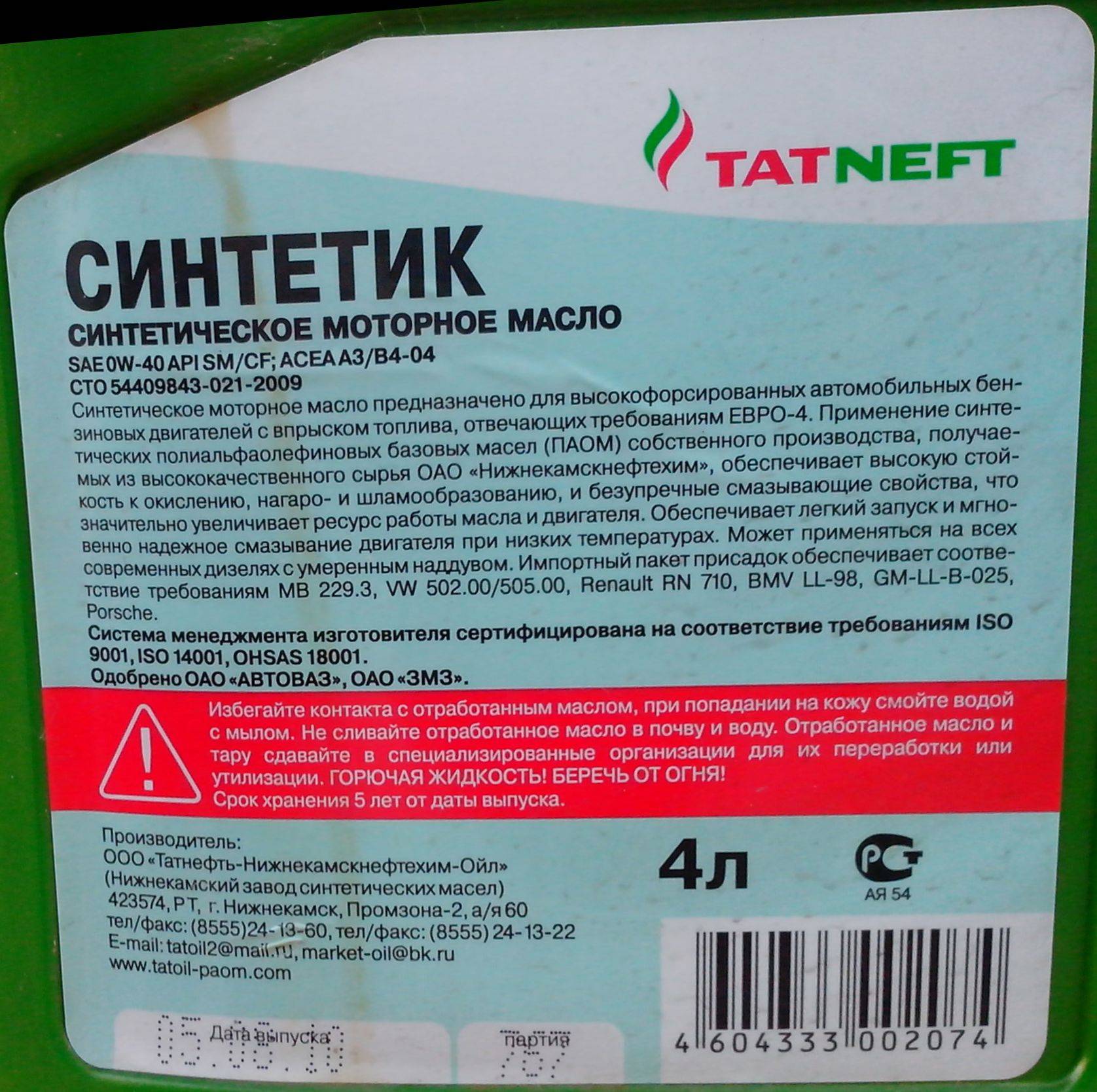 - Какой срок хранения синтетического и полусинтетического моторного масла?
