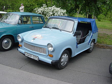 Trabant — автомобиль, который был произведен на заводе Восточной Германии VEB Sachsenring Automobilwerke Zwickau в Цвикау. , Заксен. Это было основное транспортное средство в Восточной Германии, предназначенное для экспорта внутри коммунистического блока и за его пределами. Главной особенностью продаж было то, что в нем было место для трех взрослых и багажа в компактном, легком и прочном корпусе, а также то, что он был быстрым (при введении) и долговечным.