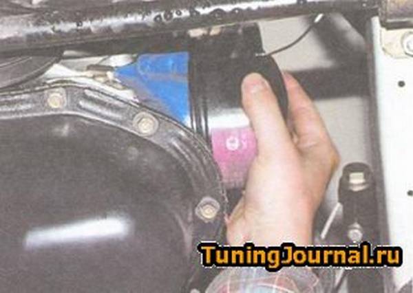 Когда мотор остывает, открутить фильтрующий элемент становится сложнее.