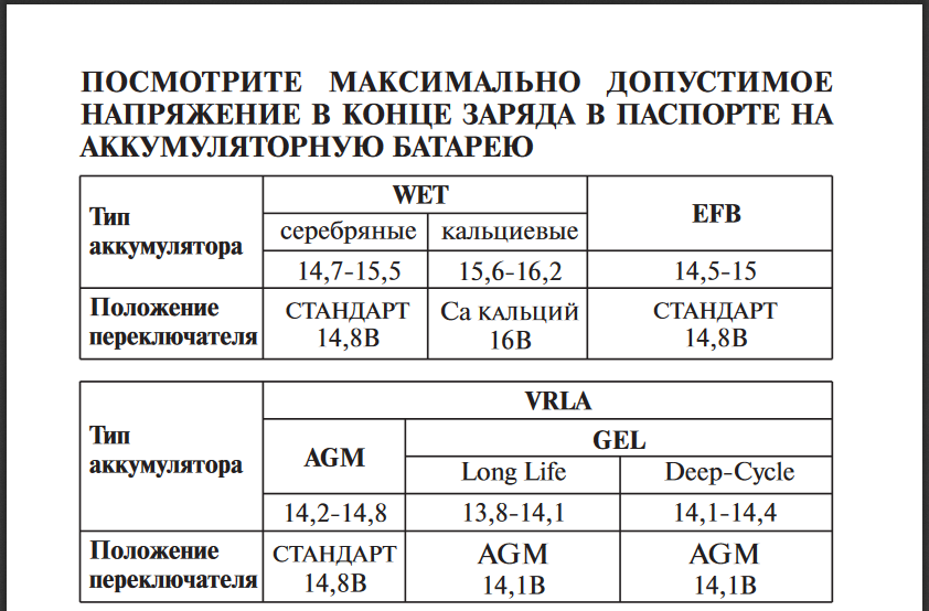 - ΠΠ° ΠΏΡΠΈΠΌΠ΅Π½ΡΠ΅ΠΌΠΎΠΌ ΡΠ΅ΡΡΠ΅ΡΠ΅ Π²ΡΠ±ΠΈΡΠ°Π΅ΡΡΡ ΡΠΎΠΎΡΠ²Π΅ΡΡΡΠ²ΡΡΡΠΈΠΉ ΡΠ΅ΠΆΠΈΠΌ ΡΠ°Π±ΠΎΡΡ. ΠΠ»Ρ ΠΎΠΏΡΠ΅Π΄Π΅Π»Π΅Π½ΠΈΡ ΡΠΎΠ³ΠΎ, ΠΊΠ°ΠΊΠΎΠΉ Π²ΠΎΠ»ΡΡΠ°ΠΆ Π΄ΠΎΠ»ΠΆΠ΅Π½ Π±ΡΡΡ Π½Π° Π°ΠΊΠΊΡΠΌΡΠ»ΡΡΠΎΡΠ΅, Π΅ΡΡΡ ΡΠΏΠ΅ΡΠΈΠ°Π»ΡΠ½ΡΠΉ ΡΠ΅ΠΆΠΈΠΌ ΠΏΡΠΈΠΌΠ΅Π½Π΅Π½ΠΈΡ Π½Π°Π³ΡΡΠ·ΠΎΡΠ½ΠΎΠΉ Π²ΠΈΠ»ΠΊΠΈ.